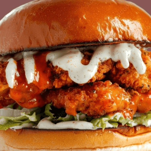 Bun kaiser - add butter, peppercorn ranch, single or double spicy dipped in buffalo sauce, lettuce