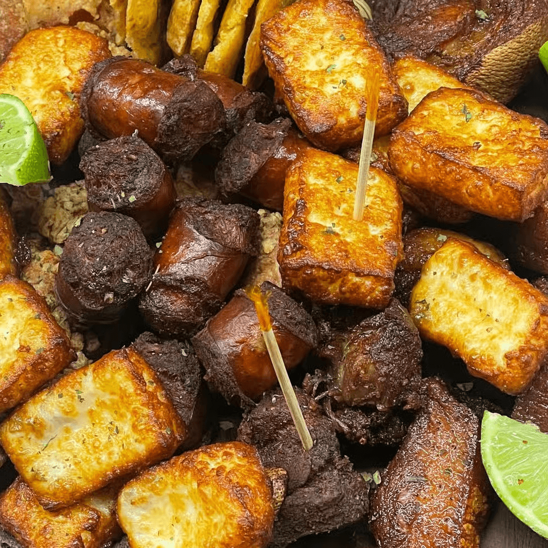 Can feed about 7-9 people, with your choice of 3 sides and 5 meats