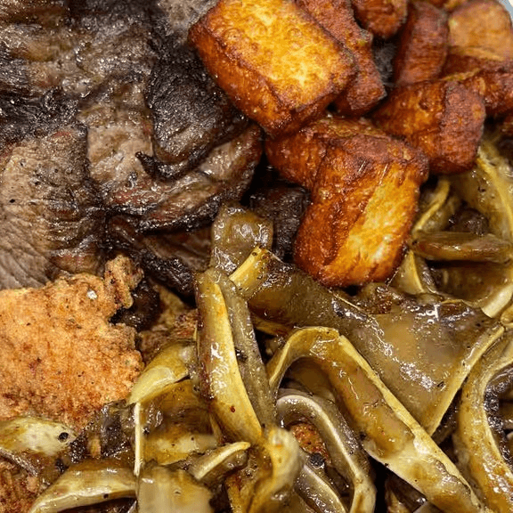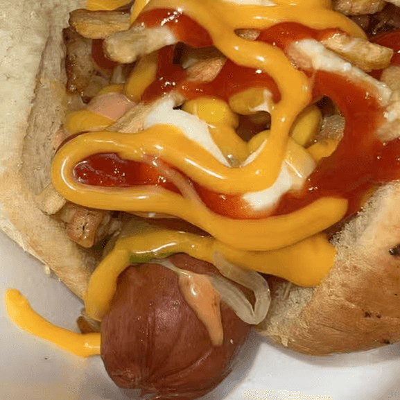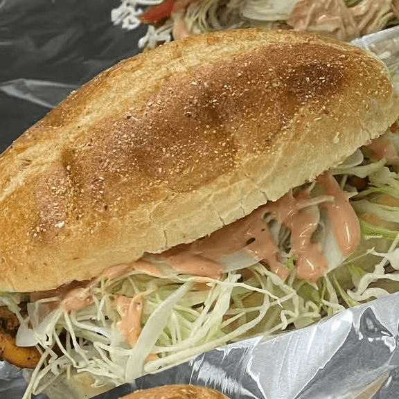 With your choice of meat, shredded cabbage, tomatoes, mayo, and ketchup